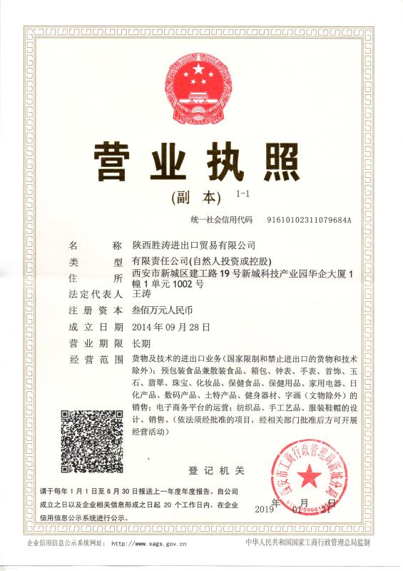 | 發(fā)證機(jī)構(gòu): | 西安市工商行政管理局新城分局 | 發(fā)證時(shí)間 : | 2014-09-28 |